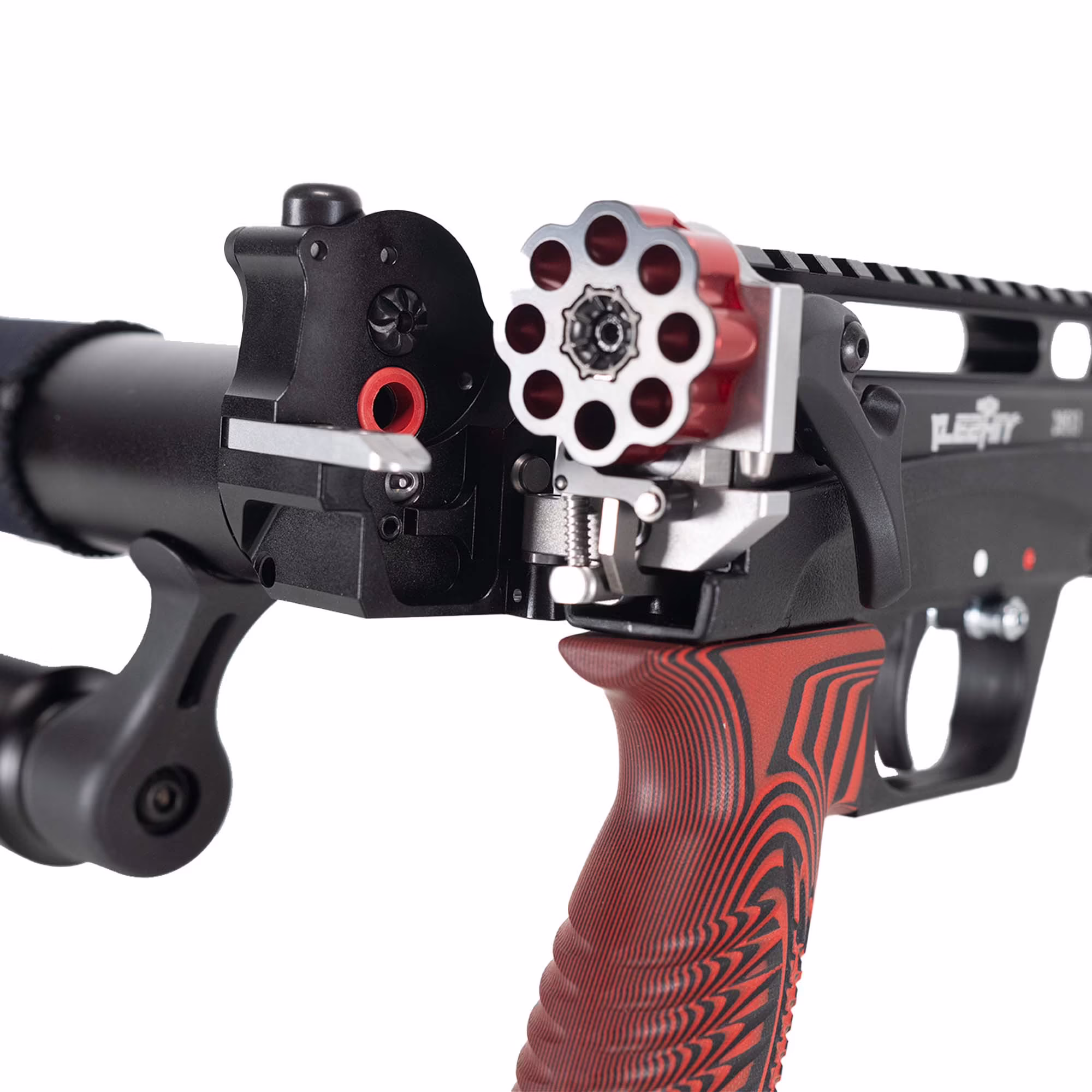 El Leshiy 2 es un rifle de aire comprimido PCP semiautomático con un cañón de 350 mm y una innovadora tecnología sin martillo. Construido por EDgun, este rifle negro funciona a una presión de llenado máxima de 300 bar.