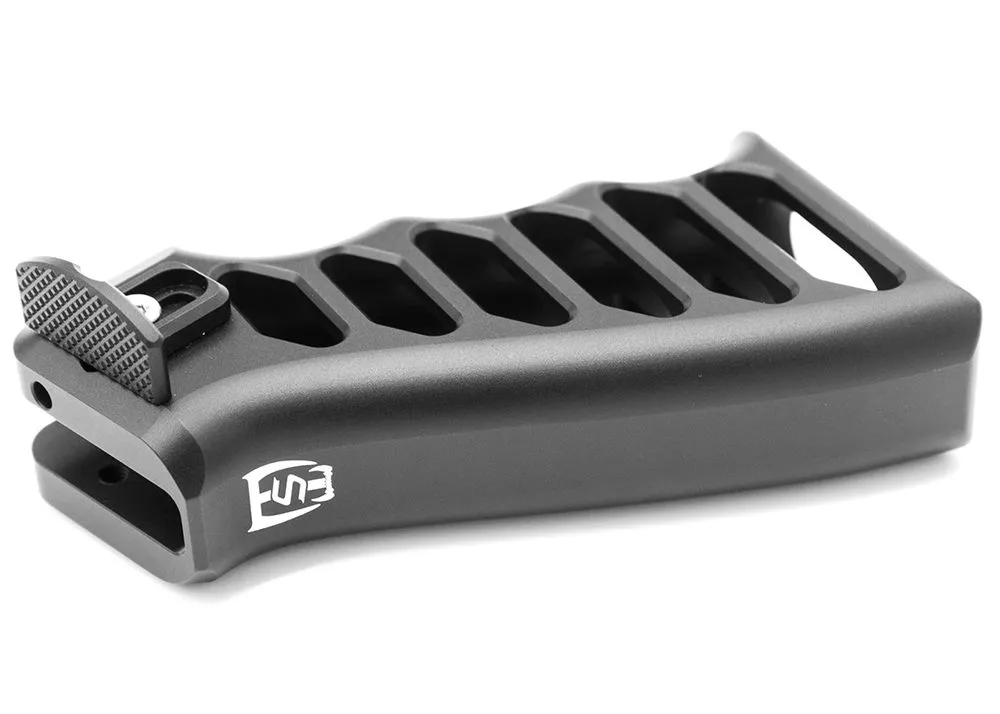 La empuñadura Saber Tactical AR Style FX Impact & Maverick ha sido fabricada con aluminio 6061 T6 que tiene una capa exterior anodizada en negro y presenta recortes que reducen el peso total a 6 oz (170 gramos) y brindan una estética única para su Impact. o Maverick de FX Airguns.