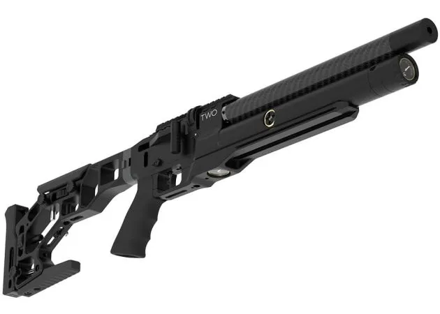 La carabina de aire comprimido presurizada Epic Airguns Two Tactical Compact tiene un cañón CZUB de alta precisión con una longitud de 300 mm. Hay una rosca de 1/2 UNF en el extremo del cañón, que se puede usar para colocar un moderador o un freno de boca. Encontrarás el depósito de aire presurizado de 92 cc debajo del cañón. El manómetro en la parte delantera del depósito indica claramente la presión. Hay un puerto de llenado no muy lejos del medidor, que le permite llenar fácilmente el depósito. El Epic Airguns Two Tactical Compact CZUB tiene un regulador que se puede ajustar externamente, lo que garantiza que se utilice exactamente la misma cantidad de aire presurizado para cada disparo. Hay un manómetro en la parte inferior del marco, colocado cerca del gatillo, que puede usar para medir la presión del regulador. El riel de accesorios Arca Swiss debajo de la parte delantera le permite montar fácilmente la carabina de aire comprimido presurizada en un soporte para pistola.