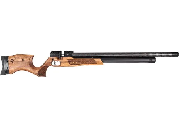 Esta carabina de aire comprimido Epic Airguns Two cuenta con una culata de madera de nogal y un cañón CZUB. La pistola de aire comprimido presenta una construcción duradera y es altamente personalizable. Proporciona alta potencia y fiabilidad tanto para entornos competitivos como recreativos.