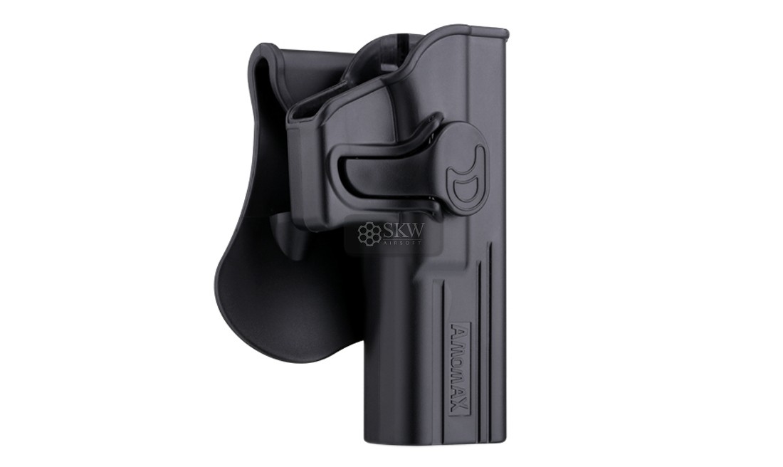 Funda Rot360 MKI Amomax: funda giratoria 360° diseñada para pistolas MKI, proporciona ajuste seguro, acceso rápido y flexibilidad en el porte táctico, adaptándose a diversas posiciones.