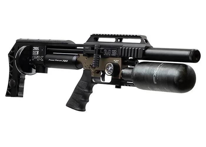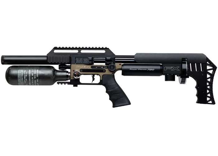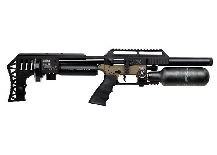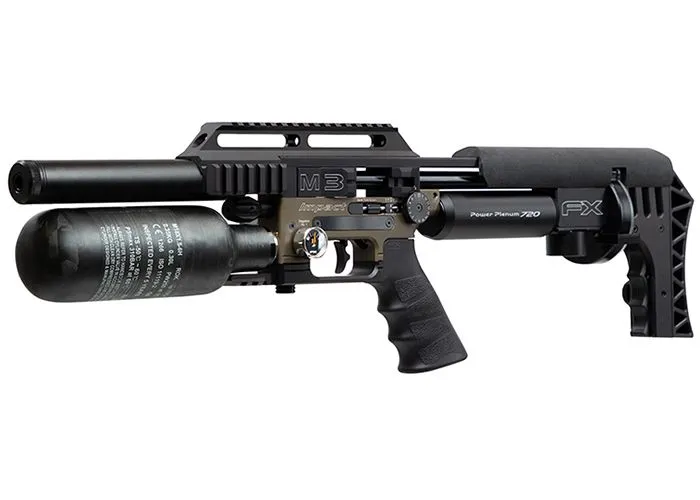 FX mantuvo el ajustador de potencia para la válvula y la pieza de hombro esqueletizada ajustable en el FX Impact M3 Bronze Compact, mientras que también mantuvo el cañón Smooth Twist X con revestimientos superiores intercambiables. Estos revestimientos están disponibles en diferentes calibres y diferentes relaciones de torsión y longitudes. Son fáciles de cambiar y el estriado se presiona desde el exterior, lo que hace que el orificio sea muy suave con un mínimo de fricción.