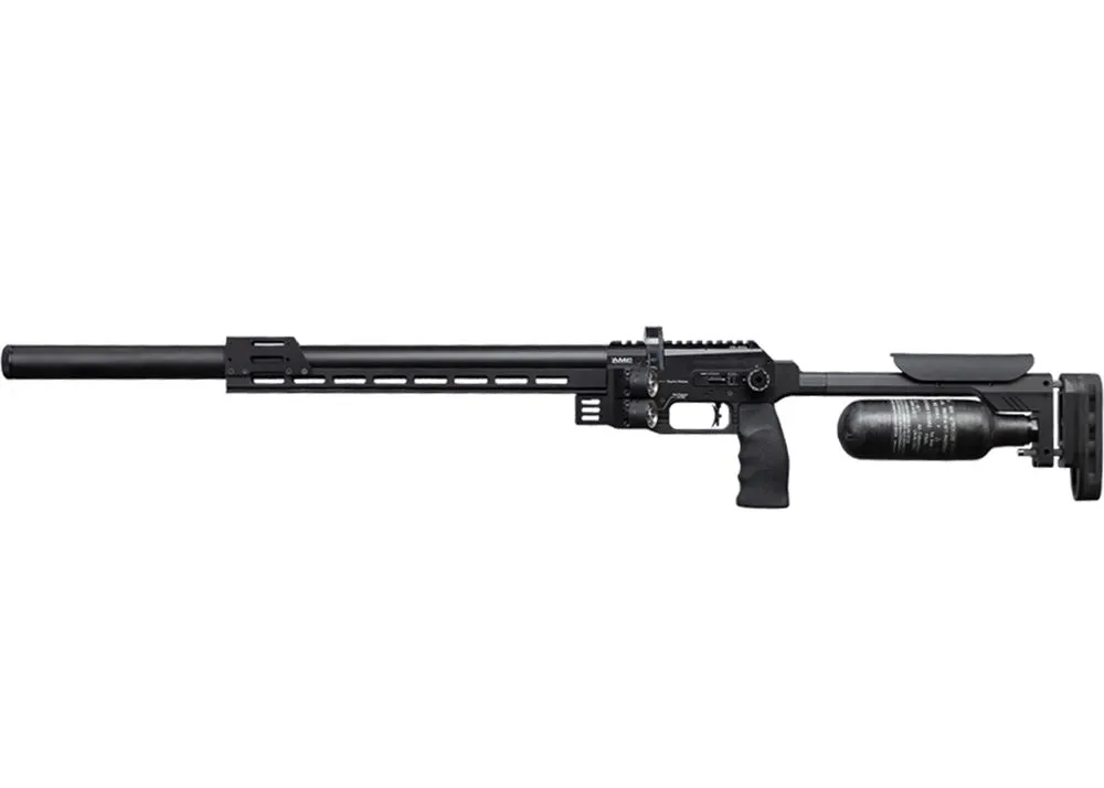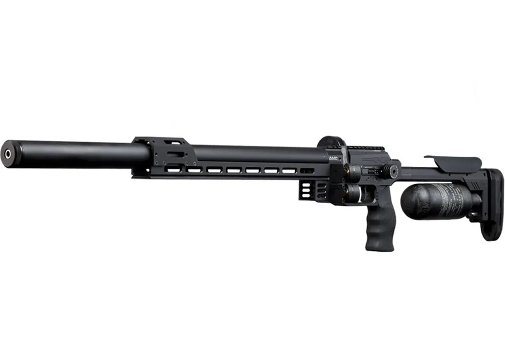 el regulador AMP MKII individual tiene su propio manómetro y se puede ajustar meticulosamente. Le permite reducir la presión proveniente de la botella de 250 bar (300 cc y con su propio manómetro) para crear la presión perfecta dentro del plenum para que coincida con la munición elegida.