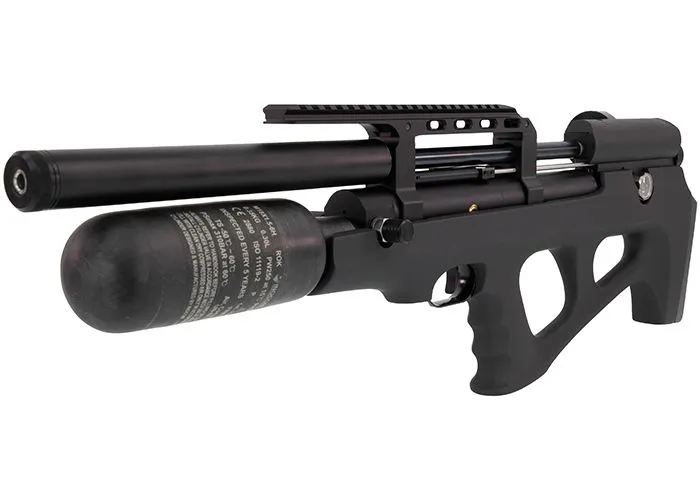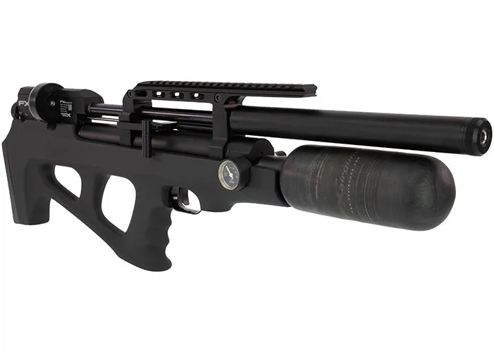 Otras características del FX Wildcat MKIII BT Compact son el cargador FX SideShot, un gatillo ajustable de 2 etapas y manómetros dobles, uno para el depósito de aire y otro para el regulador. El FX Wildcat MKIII BT Compact viene con un cañón envuelto y un riel de accesorios Weaver/Picatinny