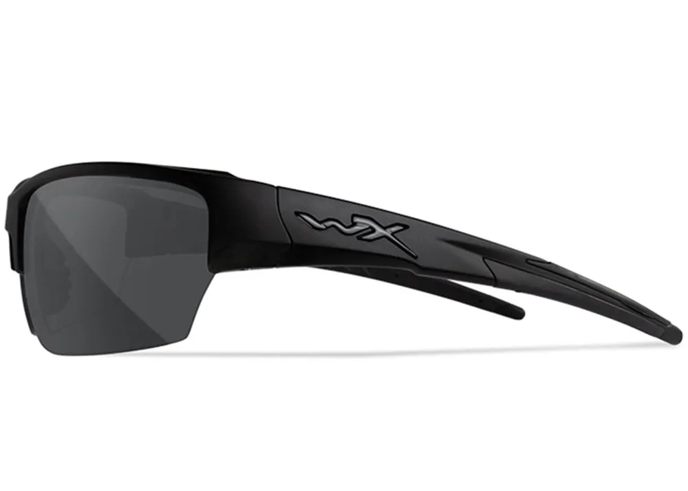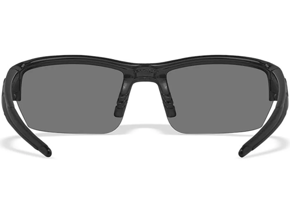 Las gafas Wiley X Saint tienen una montura negra y vienen con lentes gris/transparente/óxido claro que se pueden cambiar fácilmente. Estas gafas tienen un aspecto deportivo y un diseño elegante. Las patillas y el puente nasal están cubiertos de goma, lo que los hace suaves y adherentes para garantizar que las gafas permanezcan en su lugar y sean cómodas de usar. La montura y las lentes están certificadas para garantizar que (hasta cierto punto) son resistentes a los impactos de pequeños proyectiles que viajan rápidamente.