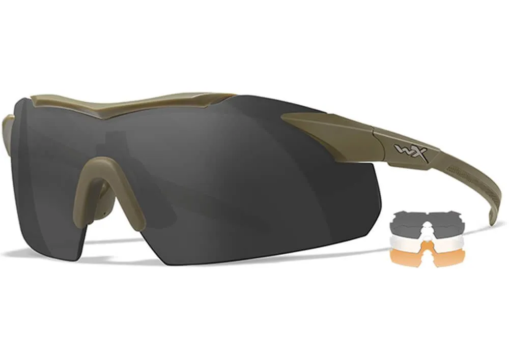 Porque las gafas Wiley X Valor 2.5 Grey/Clear/Rust Tan Frame constan tanto de la propia montura como de dos juegos de lentes. Un conjunto transparente, un conjunto gris y un conjunto óxido claro. El juego transparente deja pasar completamente la luz y está destinado principalmente a protegerse del viento y proteger sus ojos. También puedes utilizar las lentes transparentes si vas a cazar de madrugada.
