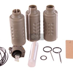 La granada Kimera JR 4.0 es una granada de impacto que funciona con gas (preferiblemente DUEL CODE). Con un tamaño de 40mm de ancho, 95mm de alto y un peso de 97gr, se convierte en la granada sónica más ligera. Es completamente reutilizable, no necesita nuevas carcasas para funcionar. Se activa por impacto en casi cualquier superficie. Compatible con el Clip Molle Fast Bang. Fabricada integramente en Europa.