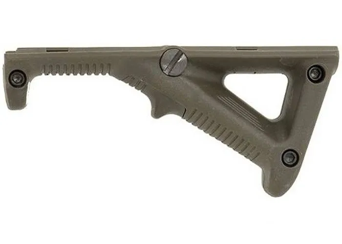 El Element MP Angled Fore Grip AFG2 Green es un agarre para la parte inferior de la parte delantera de su arma. Proporciona agarre y comodidad adicionales y este AFG2 es la versión más pequeña del famoso AFG. Está hecho de polímero duradero y tiene una ranura para el dedo frontal intercambiable. Este agarre delantero en ángulo es adecuado para rieles Picatinny, es extremadamente liviano (65 gramos) y tiene una longitud de 120 mm.