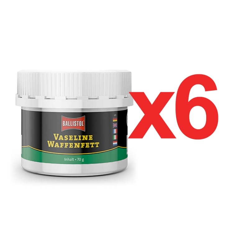 CARACTERÍSTICAS: – Vaselina lubricante de alta calidad libre de resinas y ácidos. – Ideal y especialmente indicada para lubricar partes internas y externas metálicas en armas. – Contenido: 70 m. – Caja de 6 unidades.
