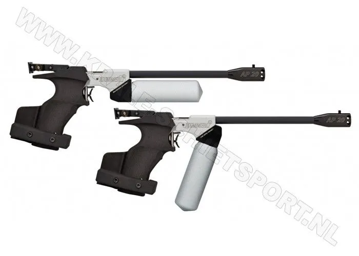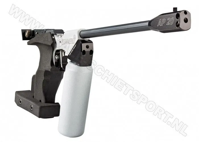 La Hammerli AP20 es una pistola de aire comprimido nueva y asequible fabricada por Carl Walther. Esta pistola de aire comprimido es ampliamente ajustable y liviana. Esto hace que el Hammerli AP20 sea ideal para tiradores novatos y clubes de tiro. Los componentes importantes, como la empuñadura, el gatillo, el cañón y la mira, son similares a los de las pistolas de aire comprimido Walther.