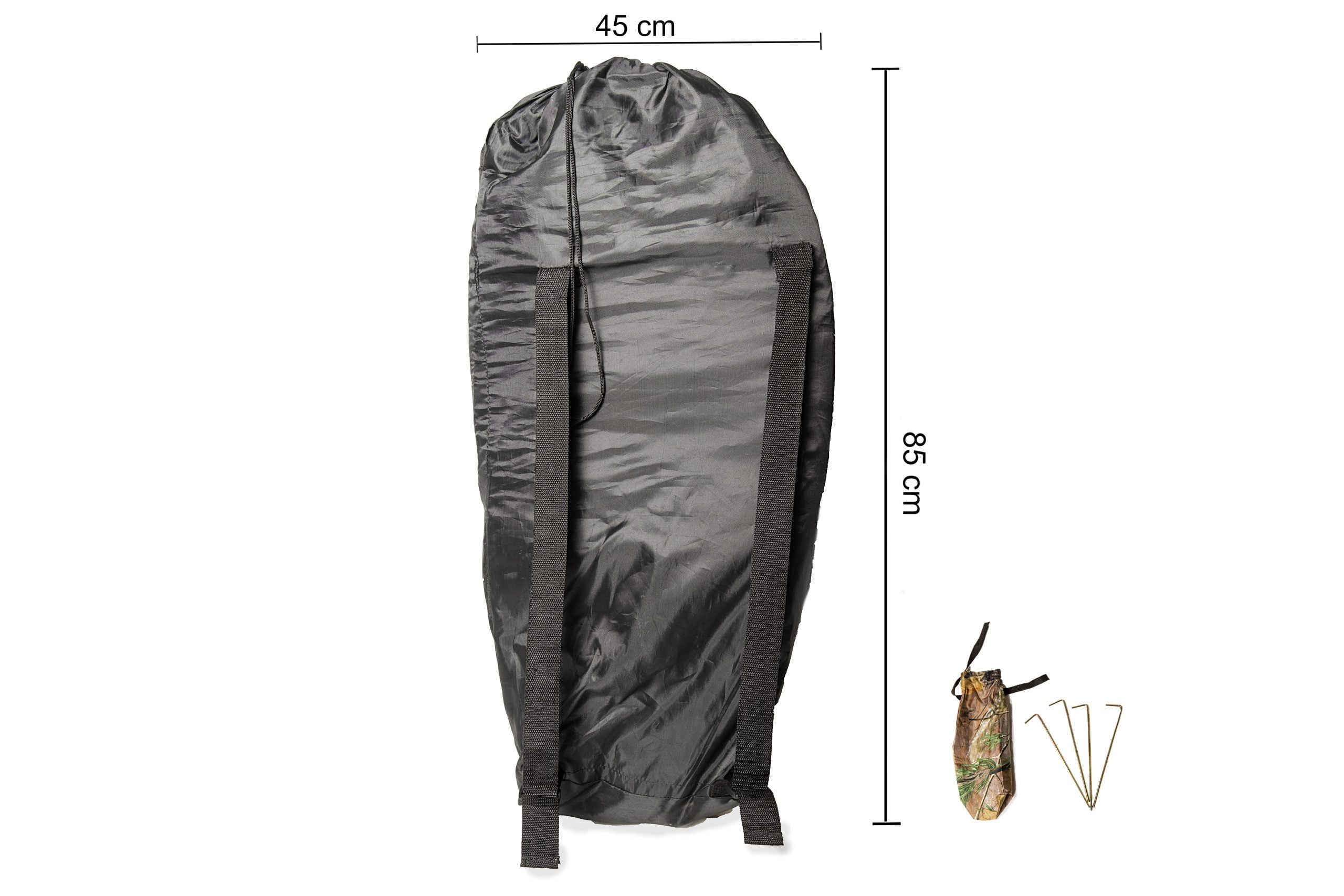 Puesto de caza portátil, hide fotográfico, blind con silla incorporada especial para perdiz a reclamo, esperas, aguardos de jabalí, venado, corzo, recechos, silvestrismo y en especial para fotografía. Tejido impermeable en camuflaje y realtree. Mantiene la calidez en el interior. Visión 360º Montaje y desmontaje cómodo y rápido. Mochila incluida con asas para su transporte. Peso 4.8 kg. Medidas 86,36 cm x 114,33cmx 41 cm