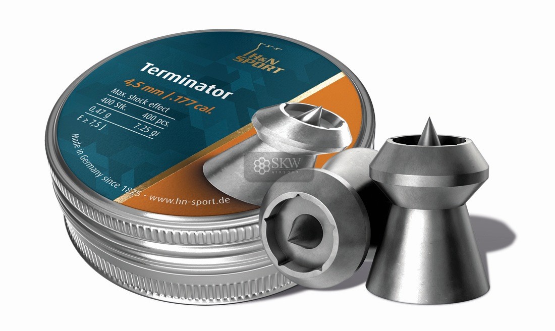 H&N Terminator 4,5 (400): Balines de alta velocidad con cabeza hueca, perfectos para precisión y potencia. Paquete de 400 unidades.