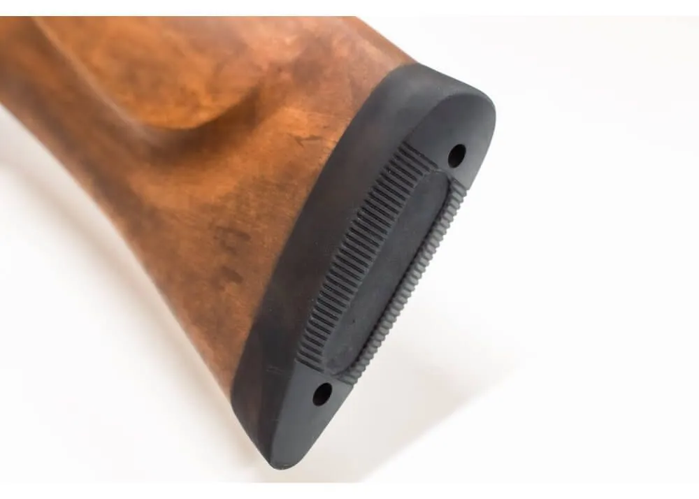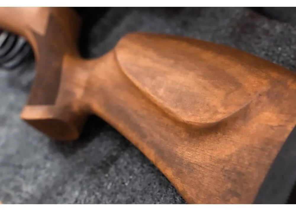 La culata de forma suave viene con un cuadrilátero grabado con láser en la empuñadura y la parte delantera, para una sujeción agradable y segura. Para que el hombro sea más cómodo y para amortiguar el retroceso, la culata viene con una cantonera de goma. La parte inferior del guardamanos cuenta con un manómetro para el depósito de aire presurizado.