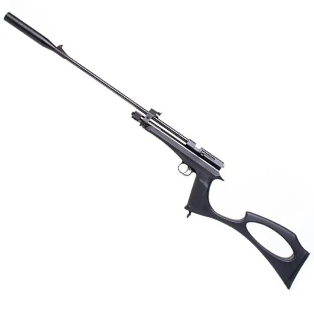 El cañón ofrece mayor velocidad a la pistola. La culata desmontable ofrece más comodidad y precisión al disparo. Tiene incorporado un carril de 11 mm perfecto montar visores para carabinas. El set incluye un moderador de carabina en el cañón largo que reduce el sonido en casi toda su totalidad.