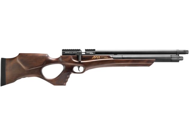 El Macavity MA3 Beech ofrece un aspecto clásico combinado con un rendimiento flexible. Un regulador ajustable de 55 ml proporciona tanto adaptabilidad como consistencia para cada disparo. La carabina de aire comprimido PCP viene con un cañón encubierto y tensado, lo que aumenta la rigidez del cañón. El cañón se ahoga para minimizar la variación potencial de los perdigones, lo que aumenta la precisión. El MA3 incluye un supresor modular con deflector, que puede acoplarse al extremo del cañón. Gracias al diseño modular, el supresor puede ajustarse en longitud y, por tanto, también en el nivel de reducción acústica que proporciona.