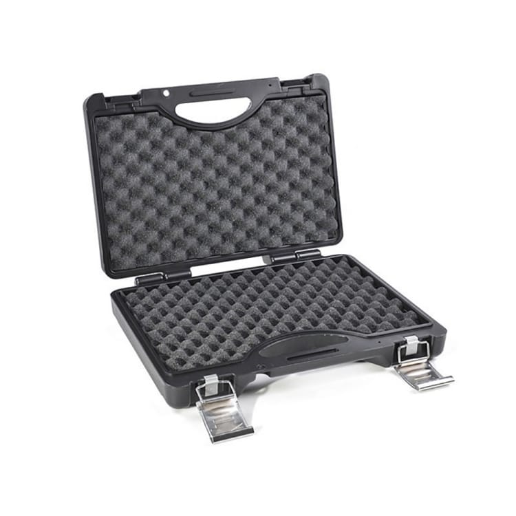 Largo 310 x Ancho 250 x grosor 70 mm. Incluye 4 cierres metálicos y espuma interior.