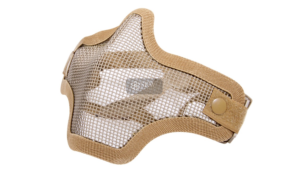 Máscara Strike V1 Tan: diseño táctico en color arena, ofreciendo protección y confort para misiones exigentes.