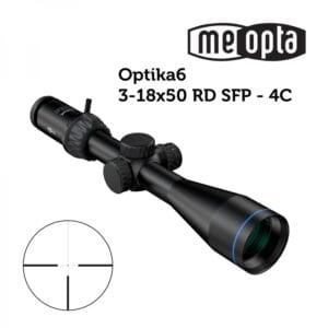 El visor Optika6 3-18×50 SFP cuenta con torretas protegidas para la regulación lateral y de altura. Los valores de clic estándar para retículas que no son MIL son 0.25 MOA, mientras que las retículas basadas en MIL presentan ajustes de 0.1 Milradian por clic. Está disponible en varias configuraciones de retícula, incluida la iluminación opcional y DichroTech, están diseñados pensando en los cazadores y tiradores. CARACTERÍSTICAS: – Garantía de 10 años. – Waterproof. – RD: Retícula iluminada tipo 4C – Rango de magnificación: 3 – 18 x – Lente objetivo: 50 mm – Hilo de filtro de objetivo: M55x0,75 – Tamaño del tubo principal: 30 mm – Diámetro de salida de pupila: 9,5 – 2,8 mm – Distancia ojo/ocular (mm / in): 100 // 3.94 – Campo de visión (m / 100m // ft / 100yds): 11,2-1,9 // 33,6-5,7 – Campo de visión: 6,4 – 1,1 ° – Posición del plano focal: 2 – Compensación dióptrica: -2 / 2 D – Transmisión de luz diurna: 91% – Transmisión crepuscular: 88% – Factor crepuscular: 12,2 – 30 – Impacto por clic (cm / 100 m // in / 100yds): 0,7 // 0,26 – Rango de ajuste de elevación y viento (cm / 100 m // in / 100yds): 262 // 94,3 – Corrección de paralaje: 25 yardas – infinito – Longitud (mm / pulg): 371 / 14,61 – Peso (g / oz): 849/30 – Relleno con Nitrógeno. – MeoBright 5501: Multi-revestimiento patentado de lente asistida por iones aplicado a todas las superficies ópticas. Desarrollado por Meopta, los revestimientos múltiples asistidos por ionización MeoBrightTM eliminan el deslumbramiento y las reflexiones y proporcionan una transmisión de luz líder del sector de 99,7% por superficie de lente. – MeoShield TM: El recubrimiento asistido por ionización MeoShield TM protege las superficies externas de las lentes y ofrece una mayor resistencia al rascado o la abrasión en condiciones extremas. MeoShieldTM cumple con especificaciones militares de durabilidad y dureza de la superficie.