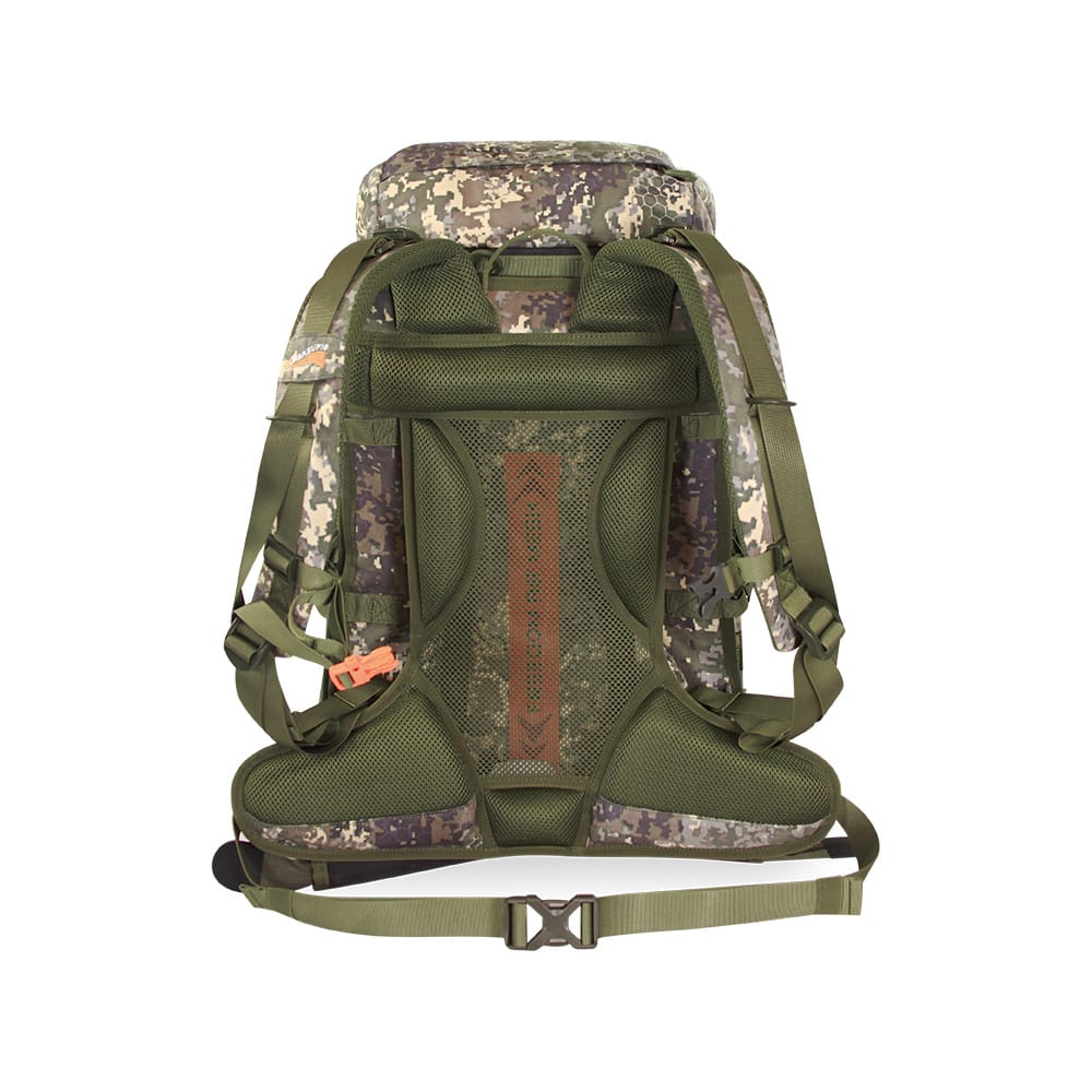 La mochila Suede Camo 65 PF PRO de Nature by Marsupio, confeccionada en suave y duradero material SUEDE, ha experimentado una completa revisión y mejoras significativas que la convierten en una opción más técnica e innovadora que nunca. La característica más destacada de esta mochila es su capucha desmontable, que proporciona una cobertura completa sobre el compartimento central. Esto significa que estás preparado para enfrentar cualquier condición climática.