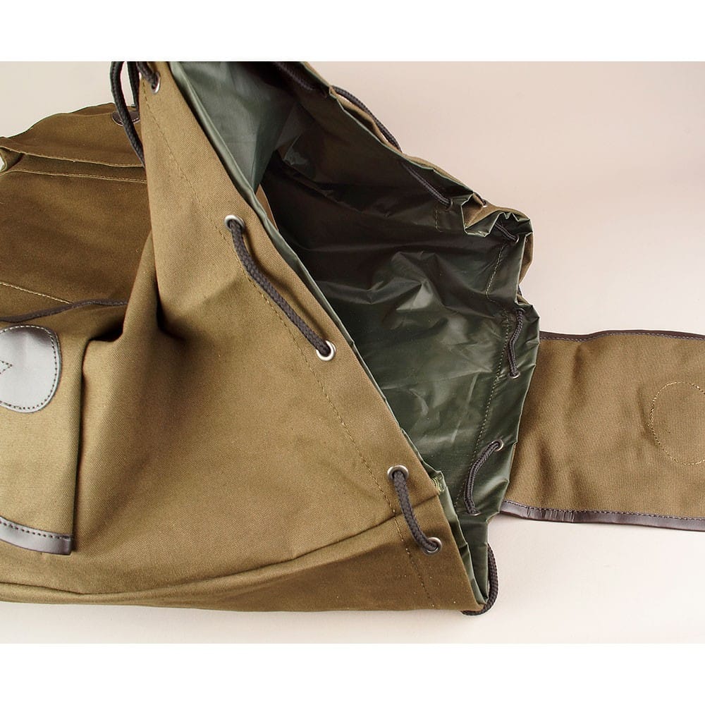 Mochila-saco de gran capacidad (52 litros). 100% algodón, con acabados en cuero.
