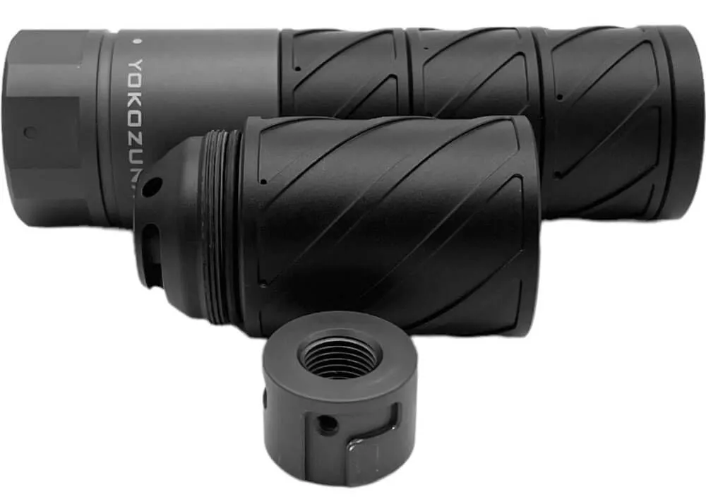 Este moderador de DonnyFL Yokozuna es un excelente moderador con un sistema seguro Quick-Detach. Viene con un adaptador de rosca de ½x20 o M18x1 que se puede montar fácilmente en el cañón de su pistola de aire comprimido. Agregar al moderador es pan comido después de eso. Simplemente colóquelo en el adaptador de rosca y gírelo una vez, después de lo cual quedará asegurado firmemente. Se alineará perfectamente todas y cada una de las veces con tolerancias extremadamente estrictas.