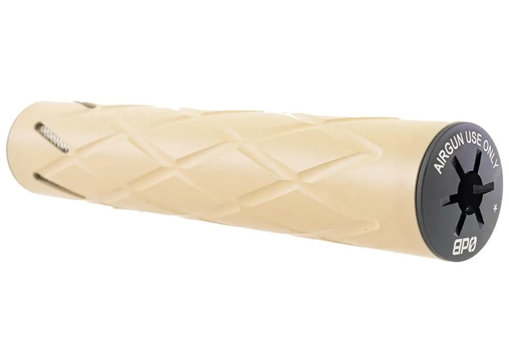 El moderador 0dB Long Cerakote Tan está mecanizado por CNC en aluminio liviano y de alta calidad, y presenta un exterior texturizado que garantiza que el moderador también agregue estéticamente a su rifle de aire comprimido.