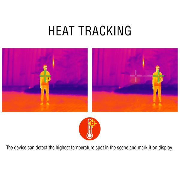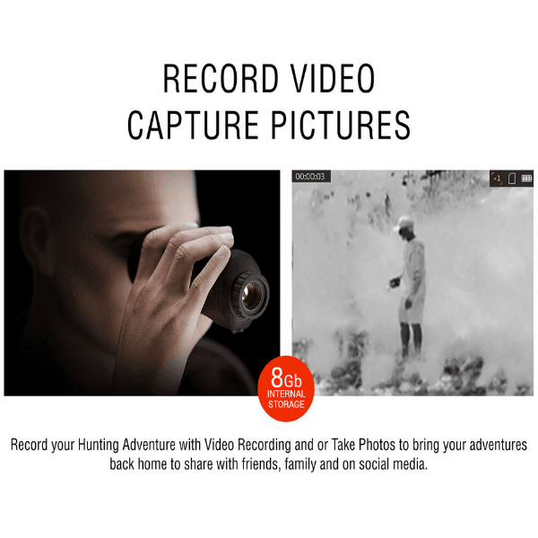 Este sensor térmico se combina con una pantalla en el dispositivo cuya resolución de imagen es de 720×540 px. Además el monocular permite la opción de hacer fotos y de grabación de video, en su capacidad interna de 8 Gb de memoria.