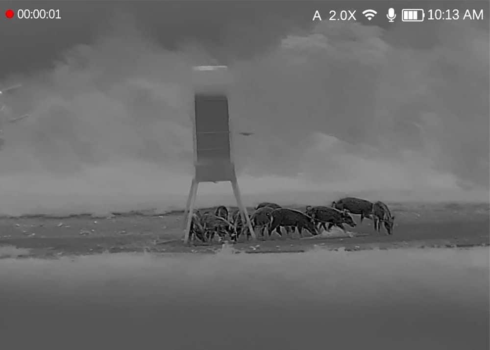 El monocular de imagen térmica Hound H325R de DNT Optics presenta una distancia focal de 25 mm y un aumento de base de 2,5x. Con una ampliación digital máxima de hasta 10 veces, este visor térmico es muy adecuado para detectar animales a larga distancia. La distancia focal de 25 mm proporciona un excelente equilibrio entre campo de visión y detalle, lo que convierte a la DNT Hound H325R en una cámara de imagen térmica muy capaz y versátil.