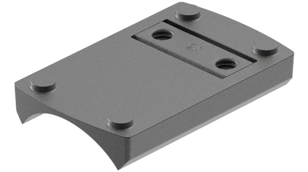Esta placa de montaje permite que el DeltaPoint® Pro se monte fácilmente en cualquier pistola 1911 con corredera estilo Colt A1 y mira trasera de cola de milano. Viene con tornillos para montar la placa en el arma de fuego y tornillos adicionales para montar el DeltaPoint Pro en la placa. Diseñado, mecanizado y ensamblado en EE. UU.