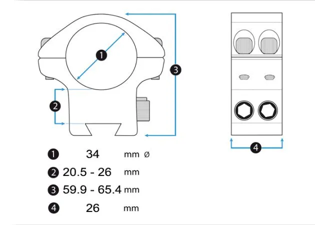 El soporte de cola de milano de 34 mm de elevación ajustable Vector Optics X-Accu tiene una altura de elevación ajustable de 37,5 a 43 mm. La altura de elevación del soporte se mide desde la parte inferior del soporte hasta el centro del anillo y tiene un rango de ajuste de 5,5 mm.