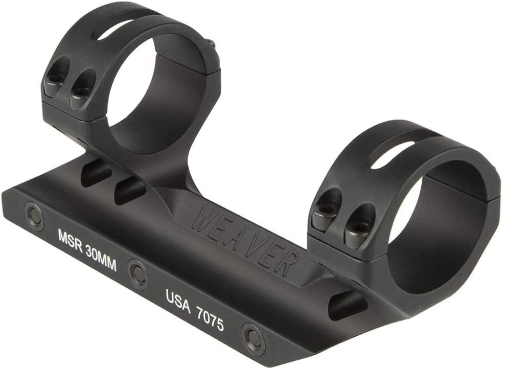 La montura Weaver Premium MSR (Modern Sporting Rifle) está diseñada específicamente para los rifles MSR. Está fabricada en aluminio 7075-T6 ligero y extremadamente fuerte. El acabado mate anodizado negro con capa dura agrega mayor dureza, protección contra la corrosión y se combina perfectamente con el arma. El diseño elegante establece la óptica a la altura ideal, con un voladizo delantero para rifles MSR. Los bordes están ligeramente redondeados para evitar que se enganche.