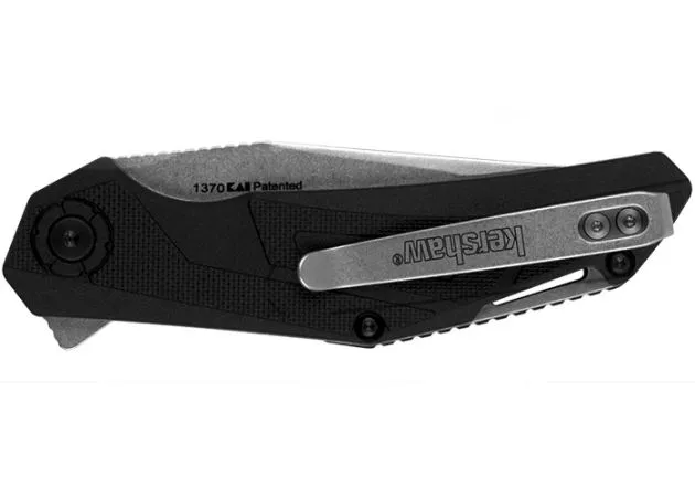 Los golpes en el lomo de la hoja y en la parte posterior del mango proporcionan un buen agarre y el árbol de levas Kershaw tiene un clip de bolsillo abatible que se puede colocar a la izquierda o a la derecha.