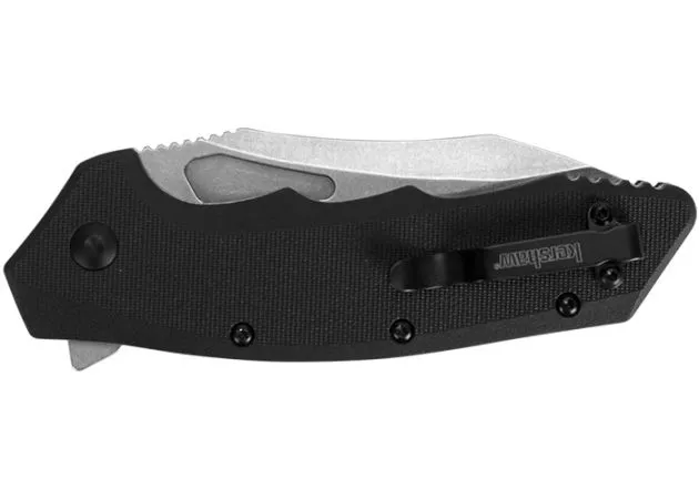 La Kershaw Flitch es una navaja robusta que se puede abrir con una sola mano mediante el sistema de apertura asistida SpeedSafe. Este sistema mantendrá la hoja en posición cerrada con una ligera presión del resorte y, al presionar la aleta con el dedo índice, empujará a través de la tensión del resorte, después de lo cual la hoja se abrirá rápidamente y hará clic en el bloqueo del revestimiento.