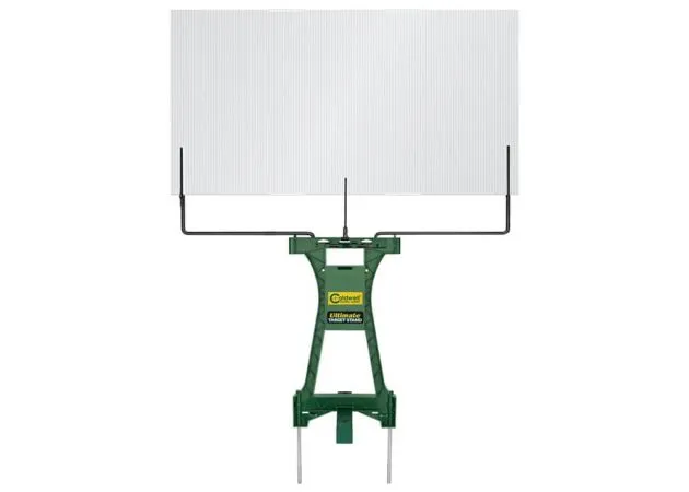 El blanco de tiro Ultimate Stand de Caldwell consta de una base que está hecha de material sintético y tiene brazos de acero duraderos que mantienen el objetivo alto. Hay un estabilizador de suelo separado en la parte inferior de la base, que se puede quitar y colocar para estabilizar aún más el objetivo de tiro. Además, hay dos pasadores en el pie de la base, que se pueden usar para plantar firmemente el objetivo de tiro Caldwell Ultimate Stand. Hay un agujero en la mitad inferior de la base donde puedes colocar el pie para clavar los pasadores en el suelo.