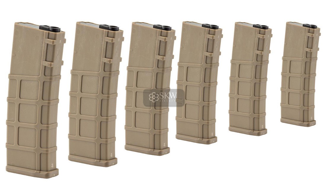 Pack de 6 cargadores M4 30RDS Tan Lonex: alta capacidad y resistencia para un rendimiento confiable y duradero.