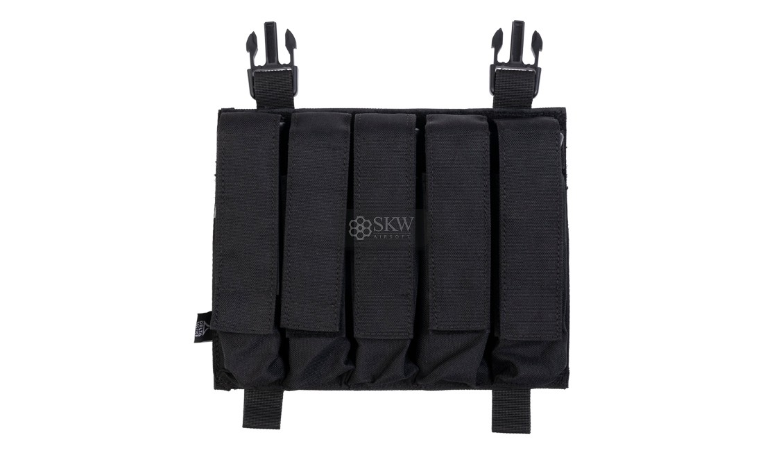 Panel frontal preconfigurado de Delta Tactics con clips machos con pouches de solapa para 5 cargadores de SMG tipo MP5, MP7, MP9…