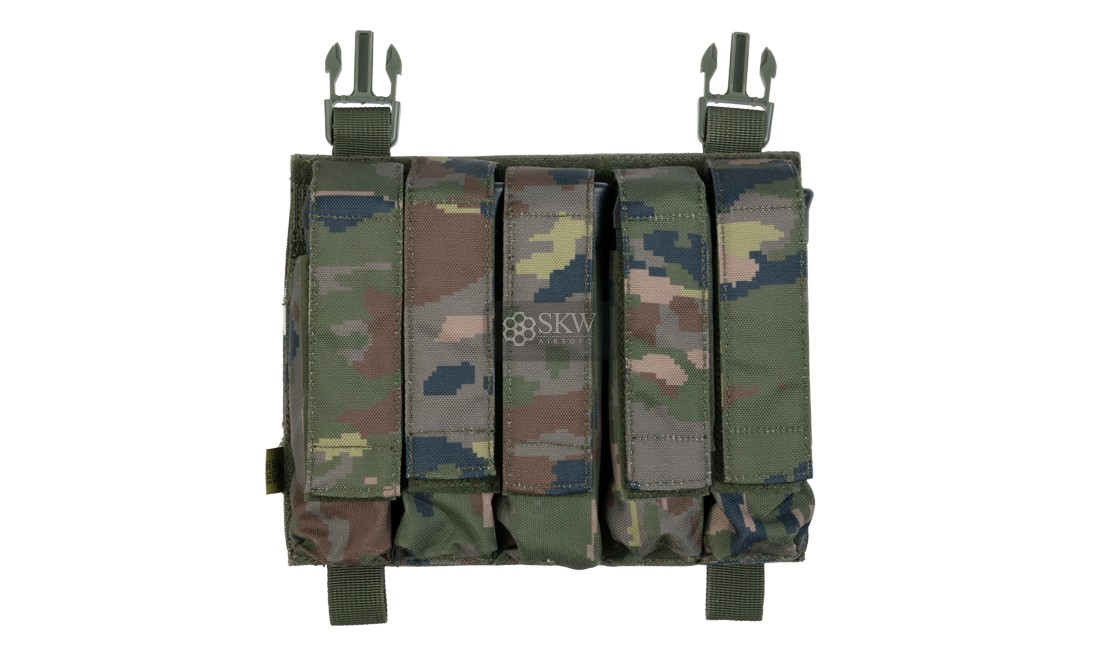 Panel frontal preconfigurado de Delta Tactics con clips machos con pouches de solapa para 5 cargadores de SMG tipo MP5, MP7, MP9…