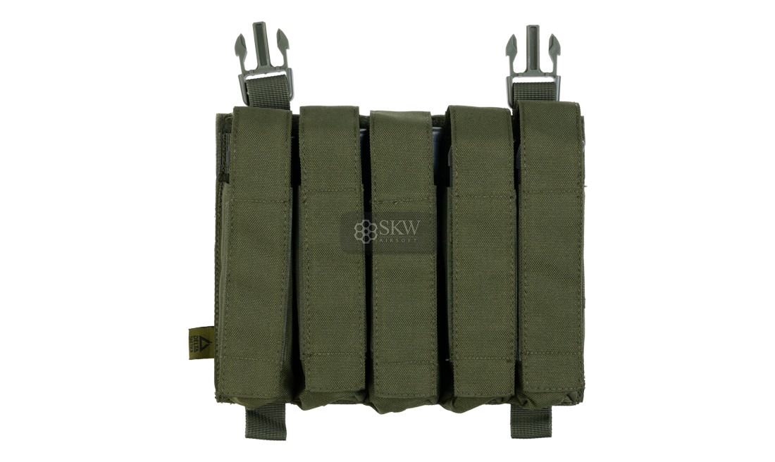 Panel frontal preconfigurado de Delta Tactics con clips machos con pouches de solapa para 5 cargadores de SMG tipo MP5, MP7, MP9…