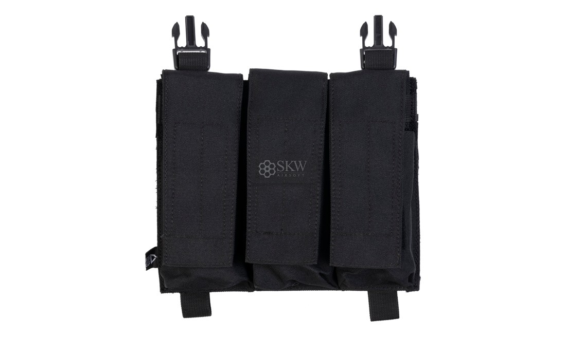 Panel frontal preconfigurado de Delta Tactics con clips machos con 3 pouches con solapa superior para 3 cargadores de tipo AR, G36, AK…