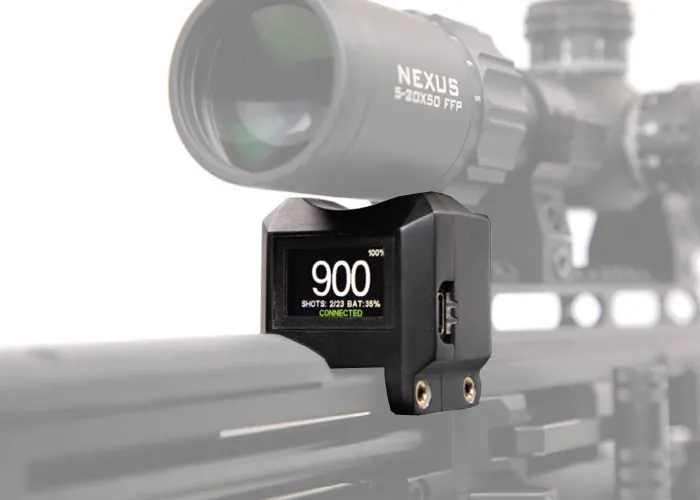 La pantalla de FX está montada justo debajo del ocular de la mira telescópica de su Impact, o en el riel accesorio lateral de su Maverick, y muestra la velocidad del proyectil que sale de su arma de aire inmediatamente. También muestra la cantidad de disparos restantes en tu cargador y el porcentaje de batería de tu crono.