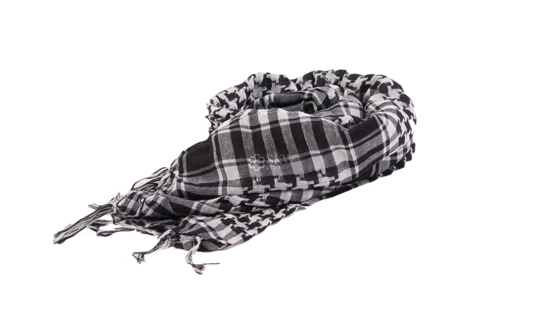 Pañuelo palestino negro y blanco: diseño clásico y versátil, perfecto para protección, estilo táctico o como accesorio funcional en diversas condiciones.
