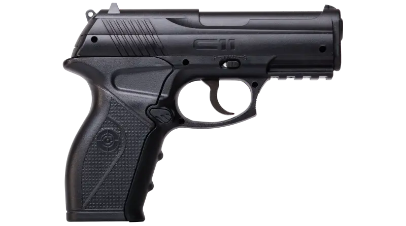 CARACTERÍSTICAS – Pistola Semi Automática CO₂ – Cargador Drop-Out para BB (20 tiros) – Sistema de miras fijas. PISTOLA CO₂ CROSMAN C11 4,5MM CALIBRE: 4,5 VELOCIDAD: 145 m/sg