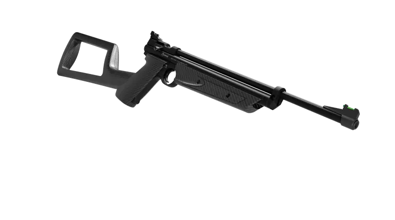 La pistola Crosman Drifter de aire comprimido de disparo único y variable, calibre 22, con un moderno diseño de Pistola de capa de hidrodifusión de fibra de carbono. La mira trasera es ajustable y la mira delantera de fibra óptica. Velocidad del Balín 170 m/s
