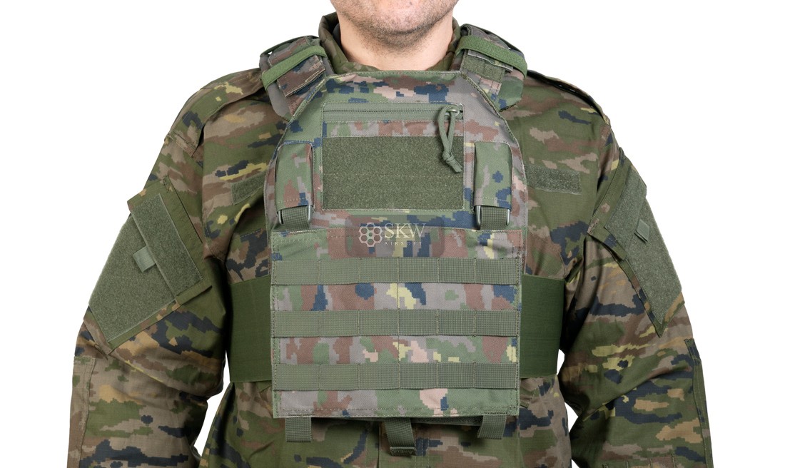 Plate Carrier Force MK1 Boscoso Español Delta Tactics: diseño resistente y camuflaje Boscoso para máxima versatilidad táctica.