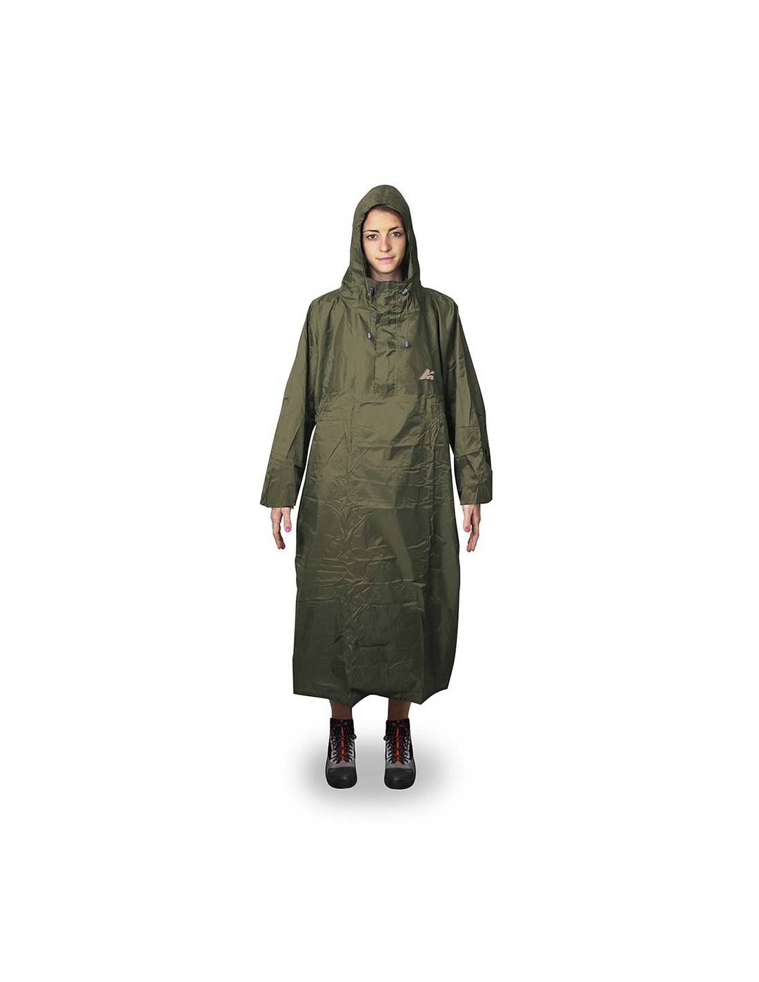 El poncho contiene una capucha para proteger la cabeza, cierre elástico y un bolsillo plegable para cubrir la mochila. Para un mejor ajuste, el poncho tiene cierre con velcro en los puños de las mangas.