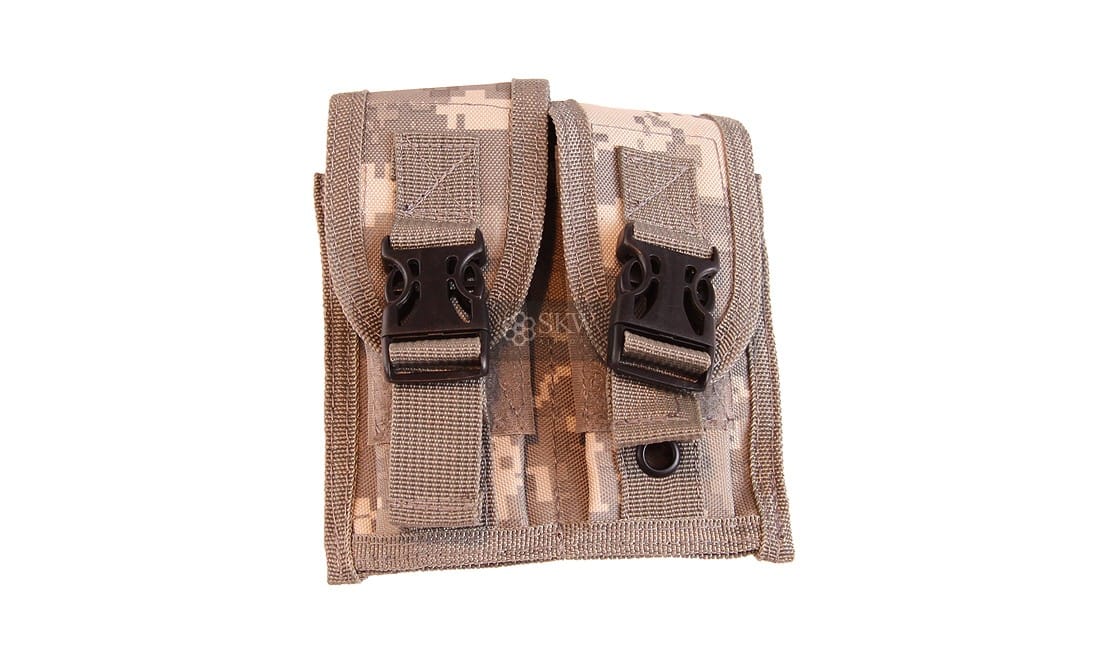 Porta 2 Cargadores Molle Cierre Clip ACU: diseño práctico y seguro para cargar dos cargadores con cierre rápido en camuflaje ACU.