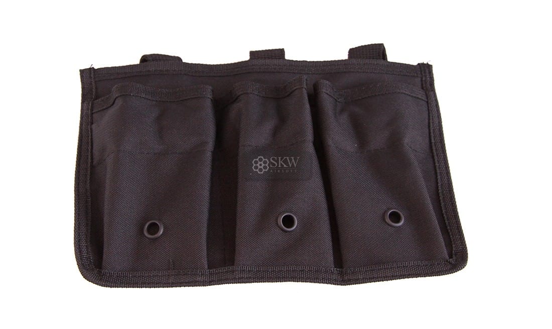 Porta 3 Cargadores Negro: diseño duradero y práctico para llevar tres cargadores de forma segura y eficiente.