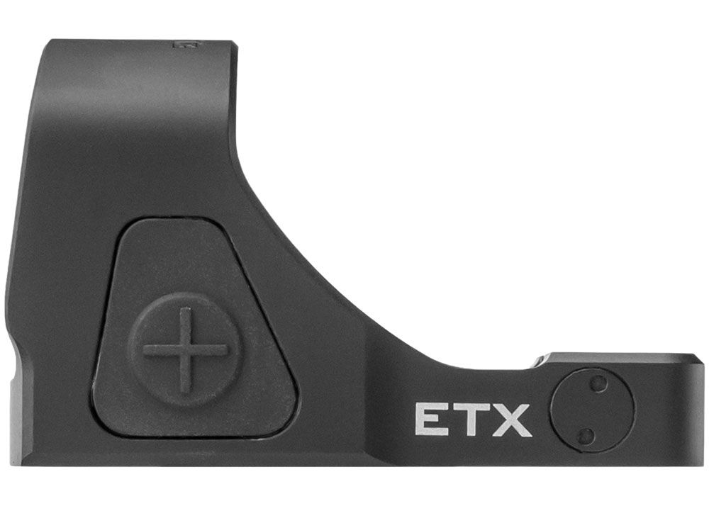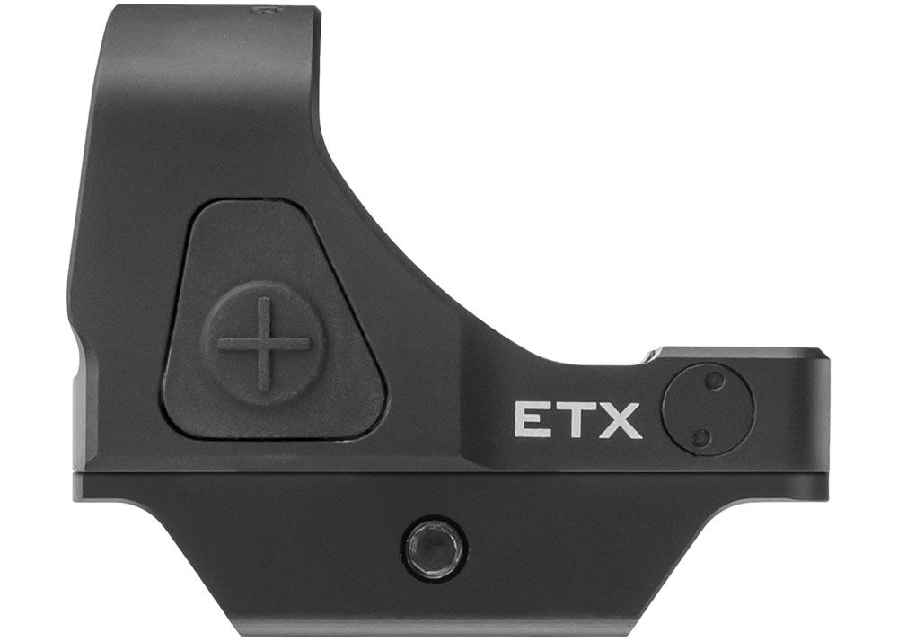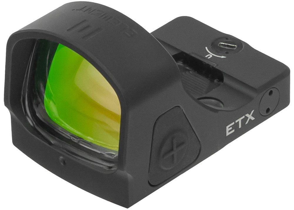 El punto rojo ETX de Element Optics es ligero y compacto, lo que lo hace adecuado para su montaje en pistolas, entre otras aplicaciones. El ajuste automático de brillo y la funcionalidad de sacudir para despertar contribuyen a la duración de la batería.
