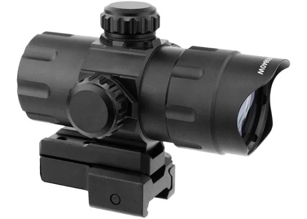 El punto rojo ITA UTG de 4,2» tiene una altura central de 30 mm y el montaje se realiza fácilmente con un sistema Weaver/Picatinny de desmontaje rápido. Los parasoles integrados en la parte delantera garantizan que siempre tendrás una visión clara. Las cómodas cubiertas abatibles protegen las lentes y se retiran con solo mover un dedo.