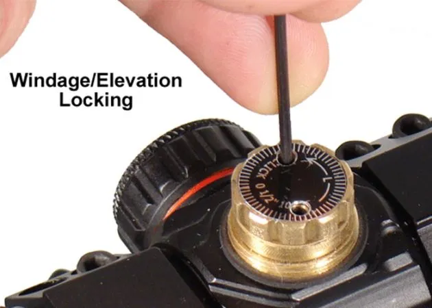 Poner a cero el punto rojo ITA UTG de 4,2» es fácil con las torretas de elevación y deriva, que se pueden ajustar con clics de 0,5 MOA (1,5 cm a 100 metros). Las torretas se pueden bloquear para evitar ajustes involuntarios.